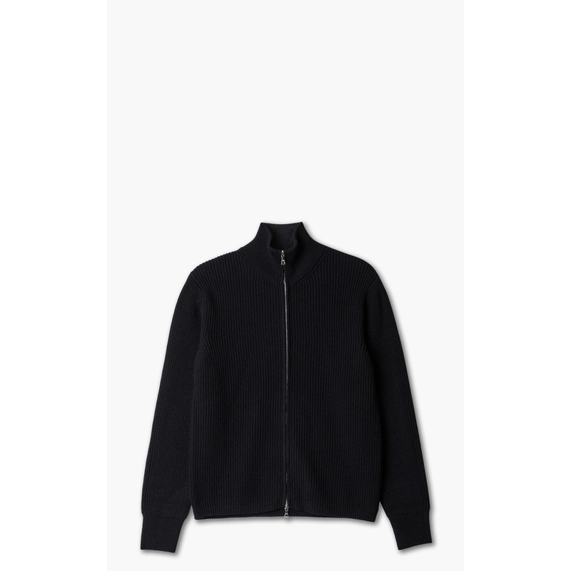 Officine Generale Full Zip Knit Eng Rib Merino Wool Black