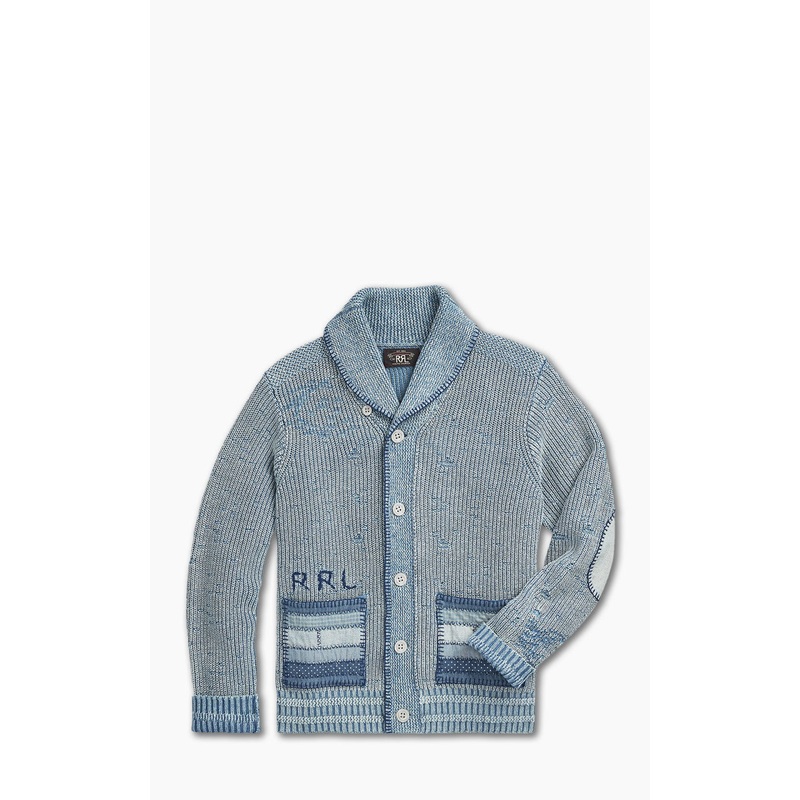 RRL Flag Patchwork Cotton-Blend Cardigan Light Indigo