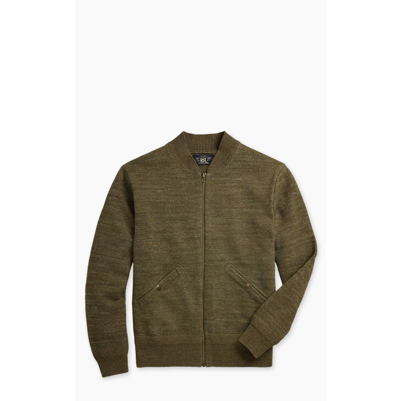 RRL Cotton Wool Full Zip Cardigan Sweater Olive Heather