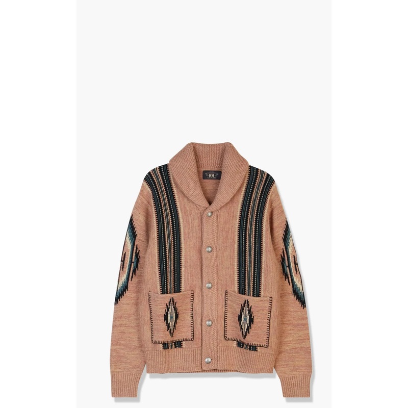 RRL Roadrunner Long Sleeve Cardigan Dusty Pink/Multi Blue