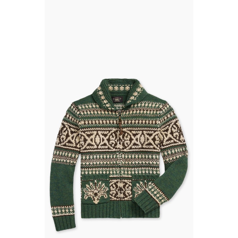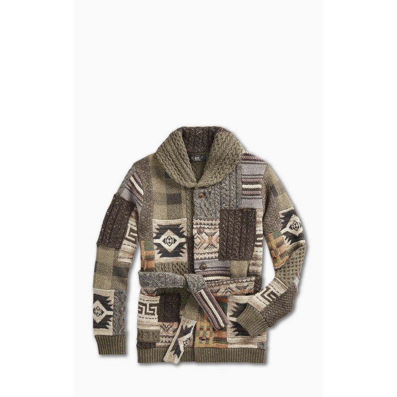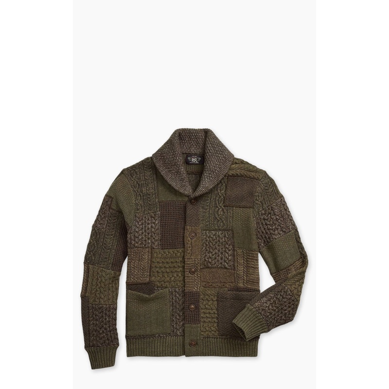 RRL Patchwork Shawl Collar Cardigan Olive Multi