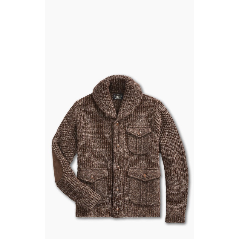 RRL Suede-Trim Marled Shawl Cardigan Brown Tan Marl