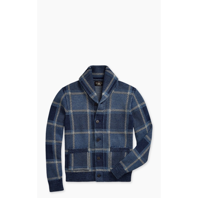 RRL Indigo Plaid Shawl Collar Cardigan Blue Multi