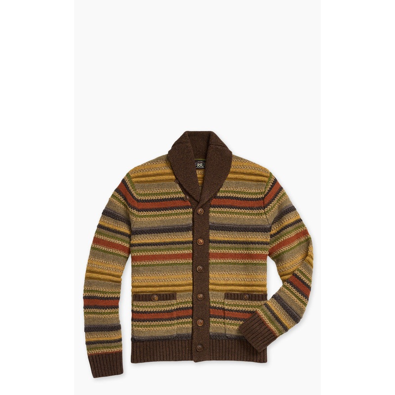 RRL Striped Wool Shawl Collar Cardigan Brown Multi