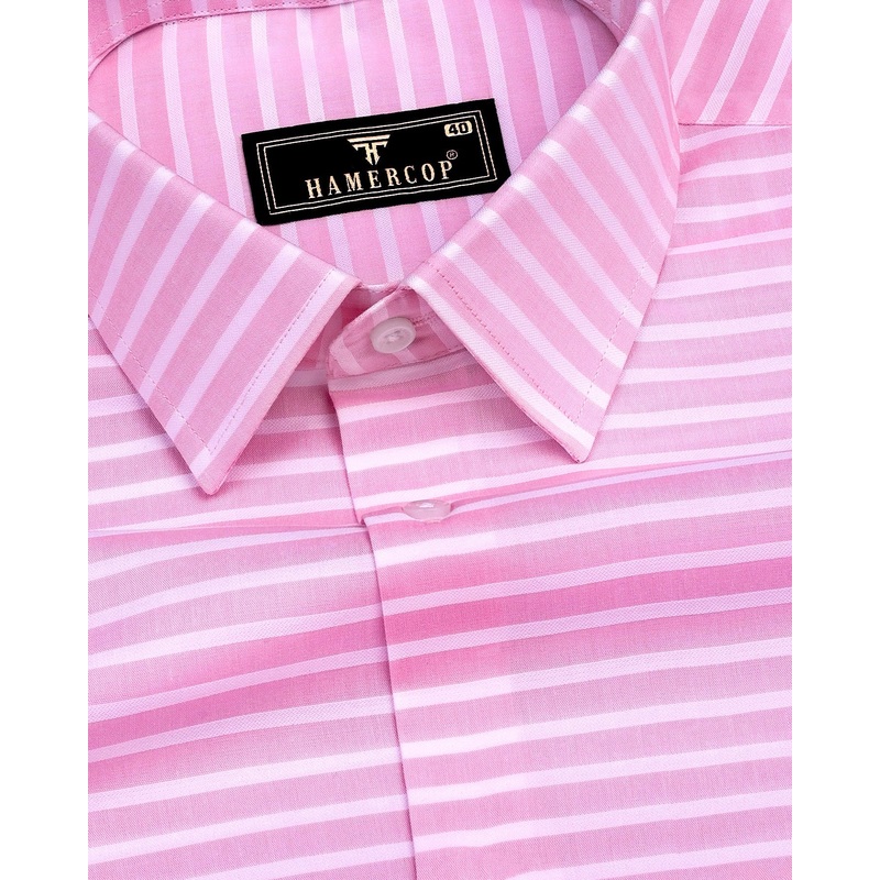 Baby Pink With White Weft Stripe Dobby Cotton Shirt