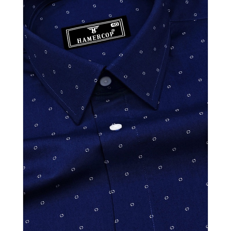 Azure Blue With White Printed Formal Cotton Shirt