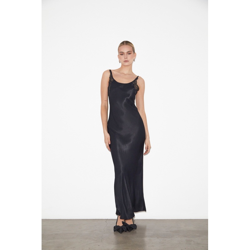 Avery Lace Slip Dress in Black BLK