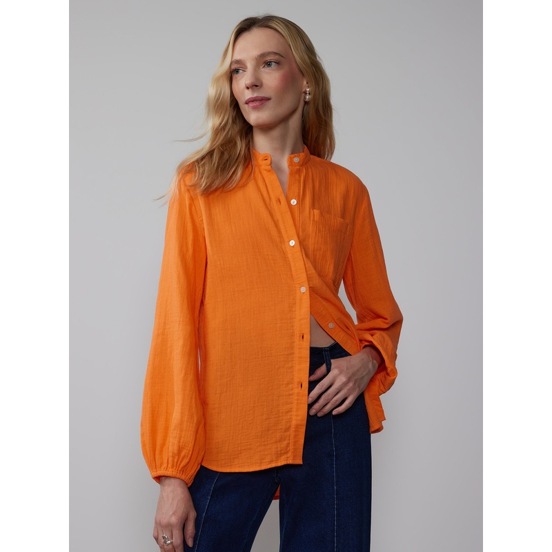 Balloon Sleeve Cotton Gauze Button Down Shirt ORANGE – SUMMER APRICOT