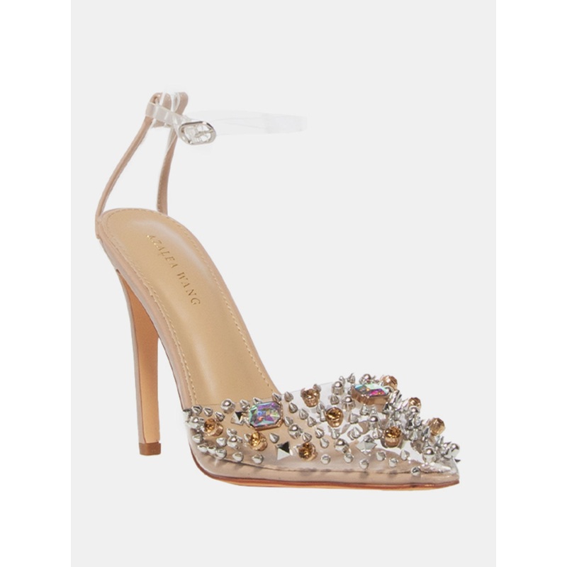 Azaela Wang Nude Ankle Strap Crystal Studded Pump – Brands We Love NATURAL – NUDE