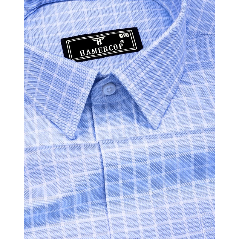 Toxic Blue With White Check Premium Giza Shirt