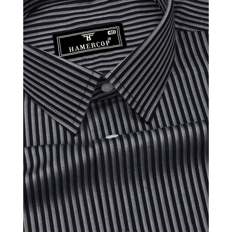 Tossida Black With White Stripe Premium Cotton Shirt