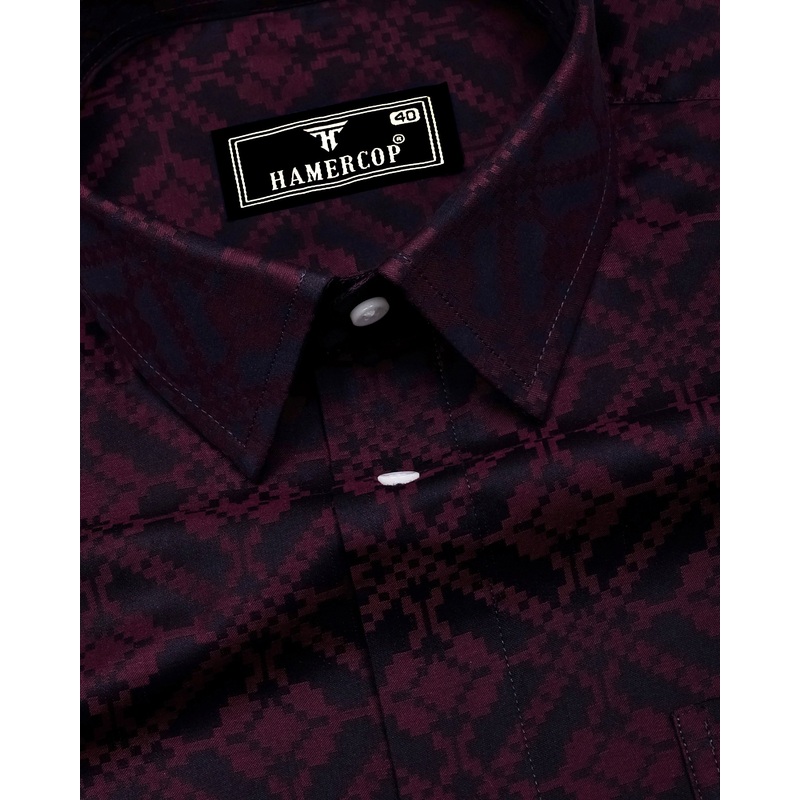 Topeka Maroon With Black Jacquard Textured Cotton Shirt