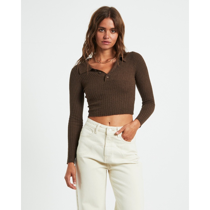 Tori Textured Button Top Choc BRN