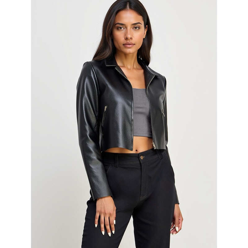 Vegan Leather Boxy Crop Jacket NATURAL – BEIGE