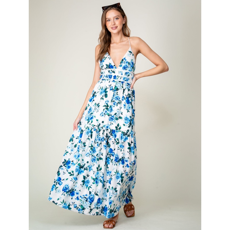 V-Neck Floral Fit & Flare Maxi Sun Dress WHITE – WHITE