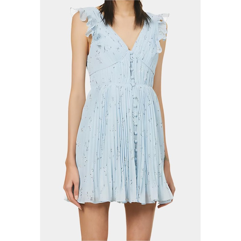 V-Neck Floral Printed Button Front Dress BLUE MULTI