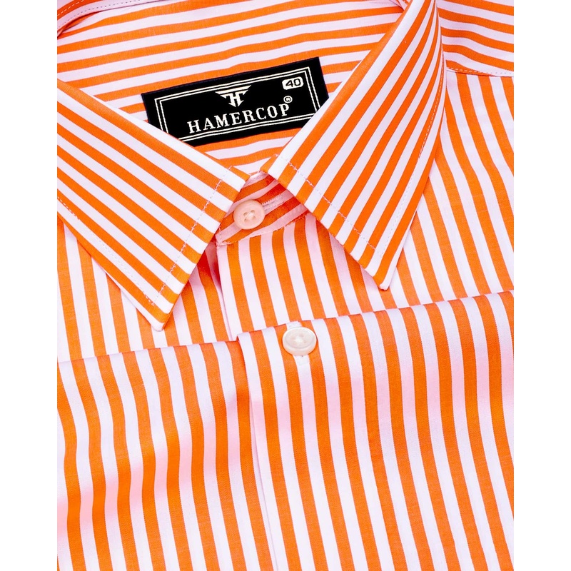 Zesta Orange With White Candy Stripe Premium Cotton Shirt