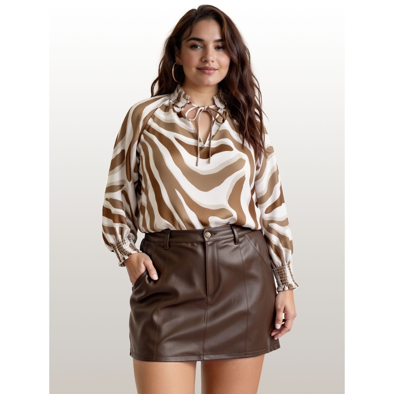 Zebra Print Ruffle Neck Top GREEN – OLIVE