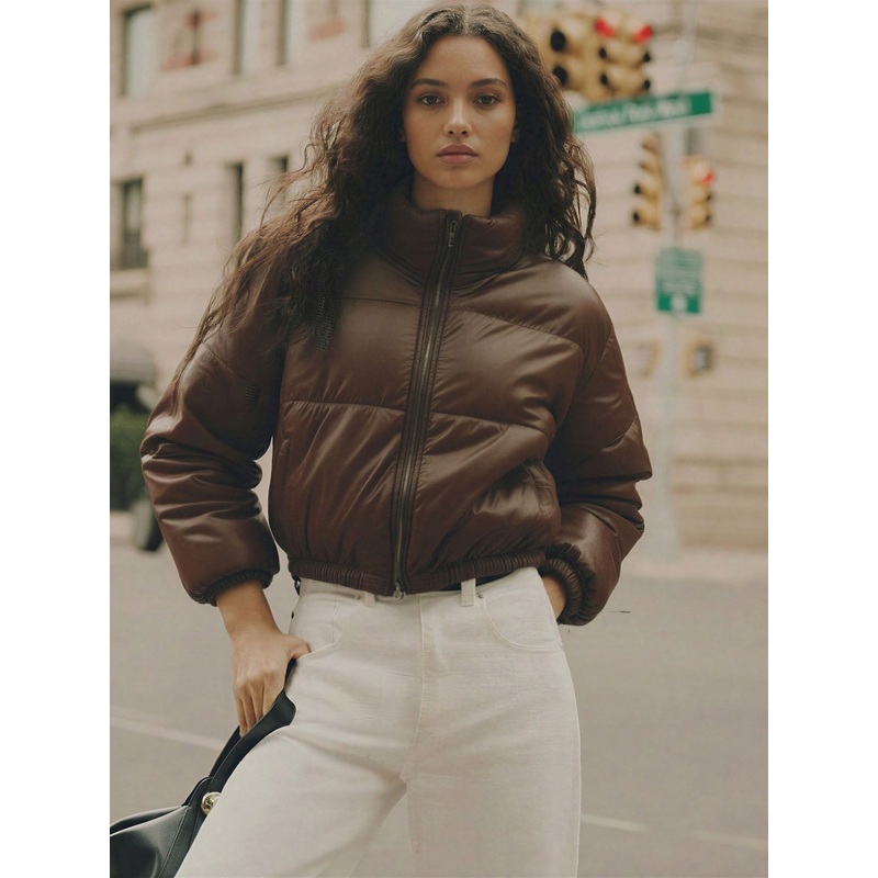 Ada Cropped Puffer Jacket BROWN – BROWN
