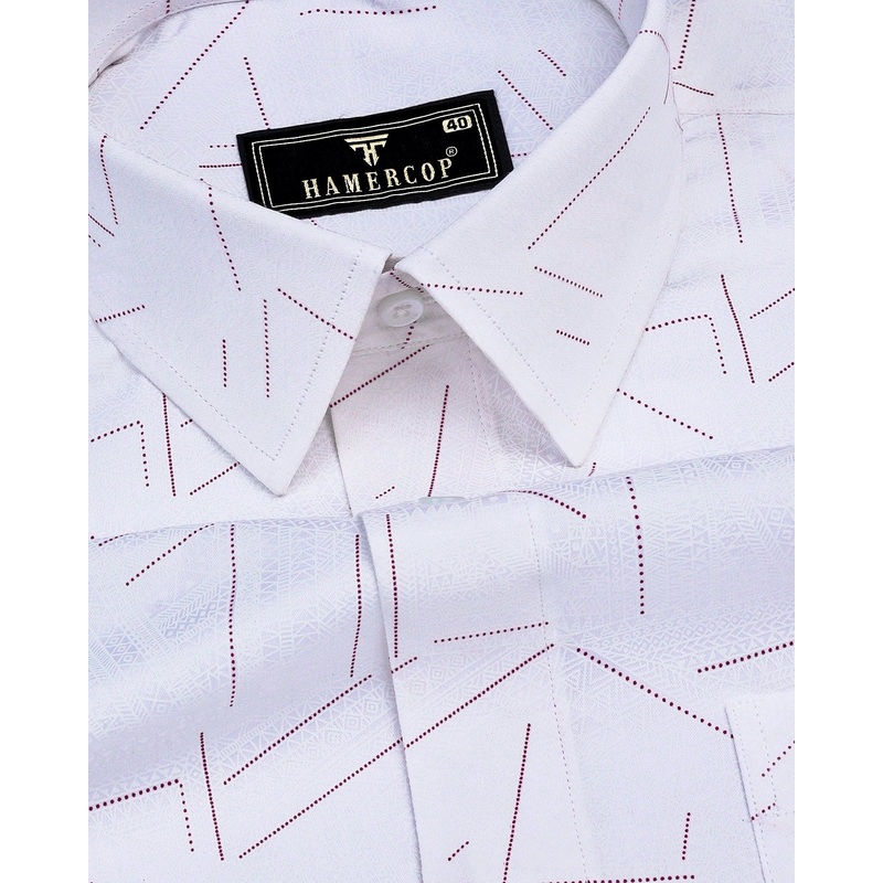 Accent White With Pink Geometrical Printed Satin Cotton Shirt