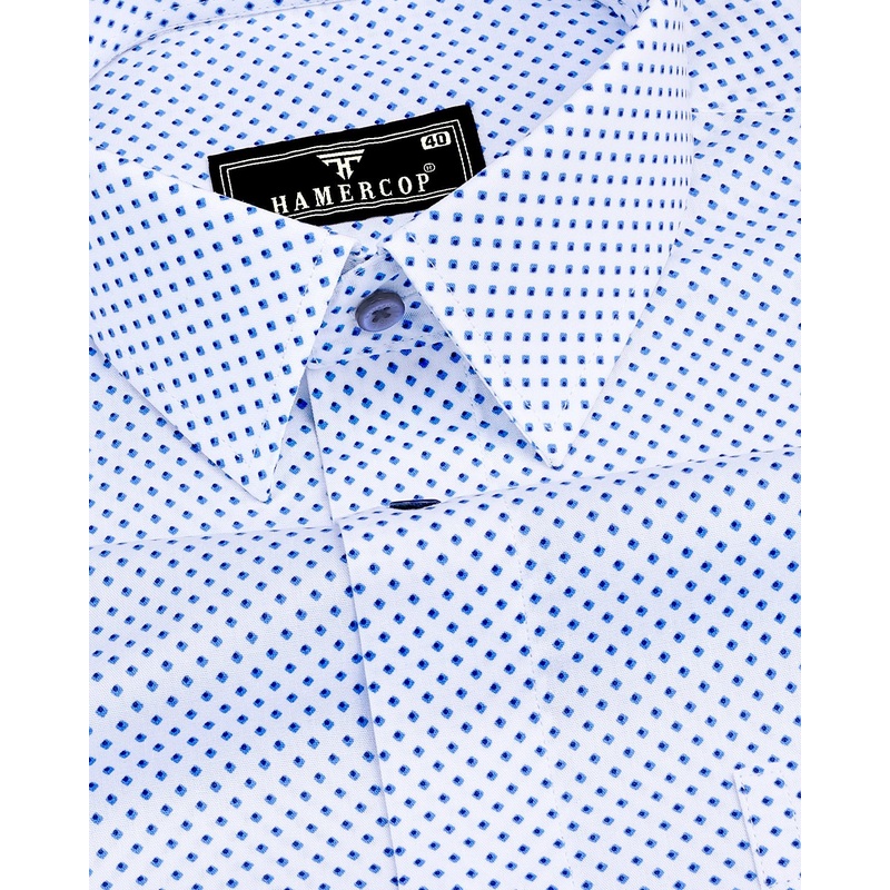 Aldona White With Blue Diamond Printed Cotton Shirt