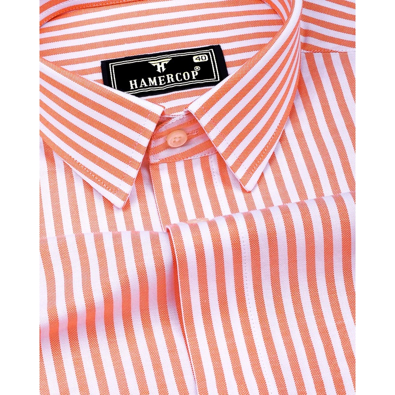 Alfa Orange With White Bengal Stripe Oxford Cotton Shirt