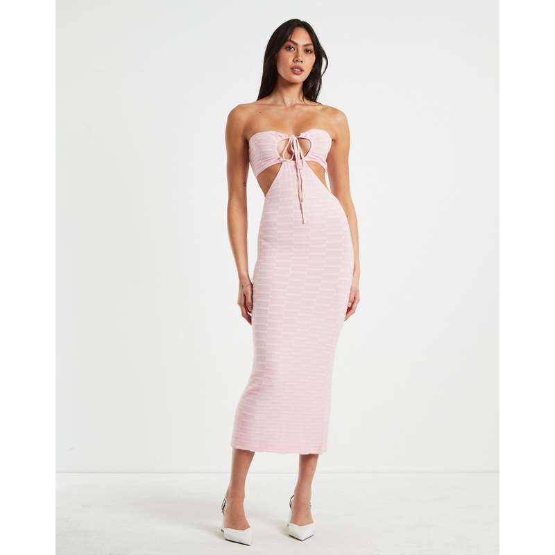 Alana Keyhole Knit Midi Dress in Pink PNK