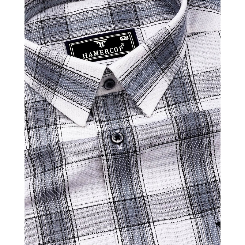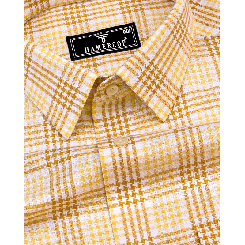 Amozoc Cream Houndstooth Amsler Dobby Cotton Shirt