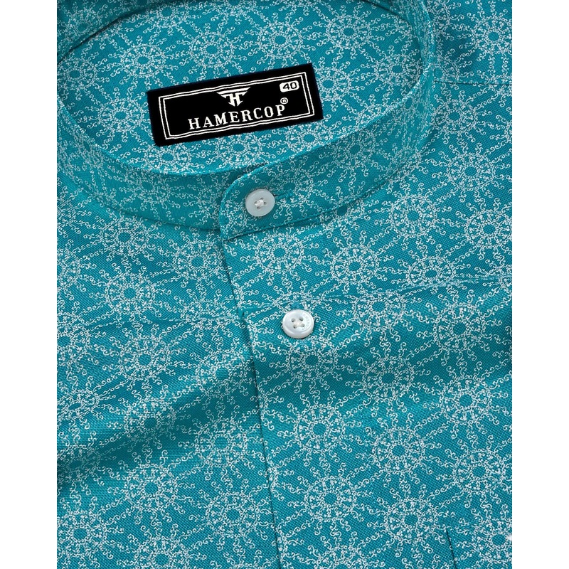 Antony Rama Green With Cream Printed Oxford Cotton Shirt