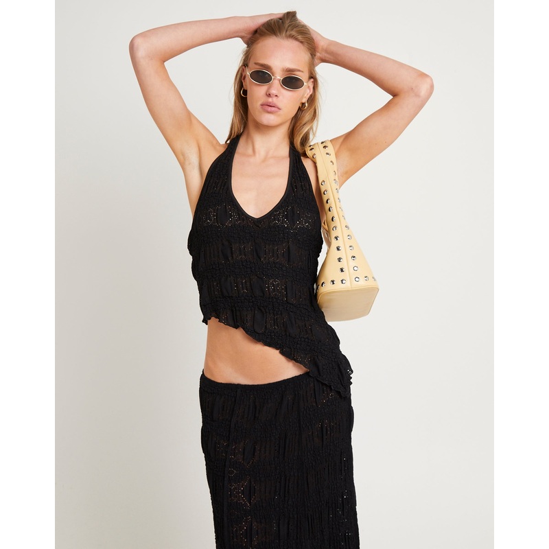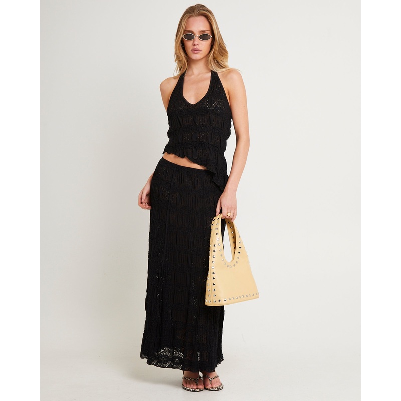 Amore Asymmetrical Textured Maxi Skirt BLK