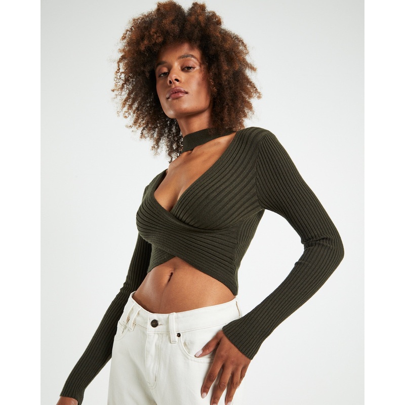 Amelia Choker Long Sleeve Top Khaki Green GRN