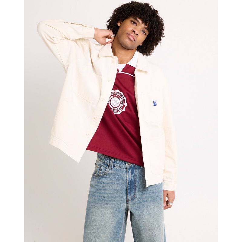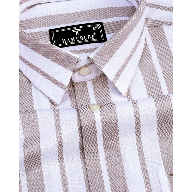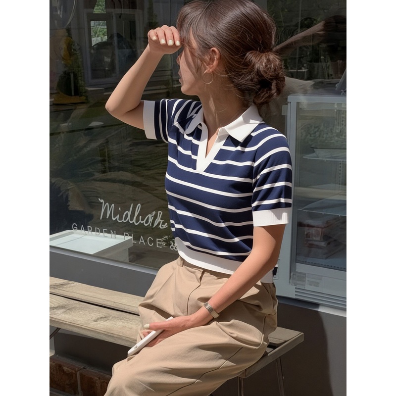 Stripe V Neck Polo Shirt WHITE – IVORY