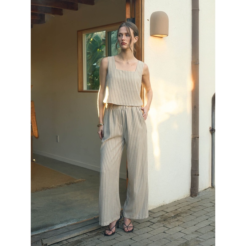 Striped Linen Square Neck Sleeveless Top NATURAL – KHAKI
