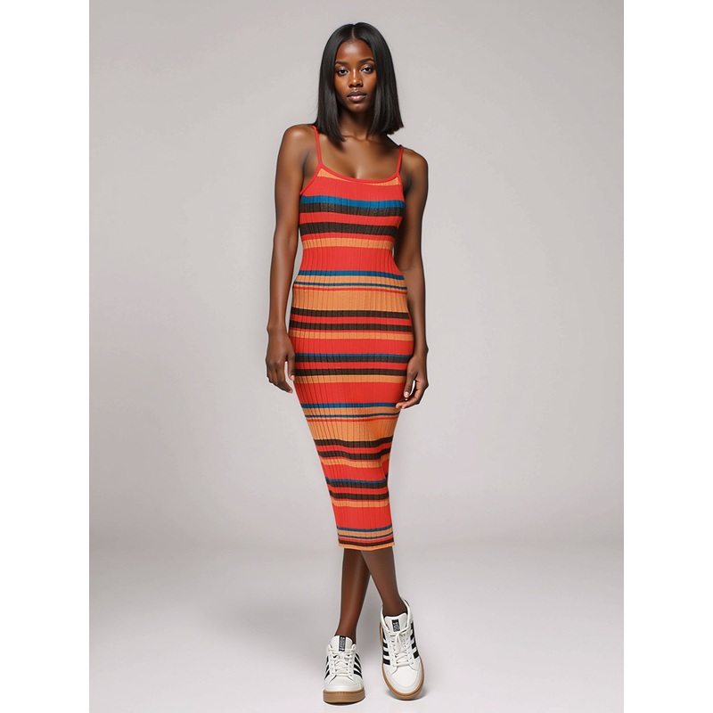 Striped Tank Bodycon Midi Dress BLACK – BLACK