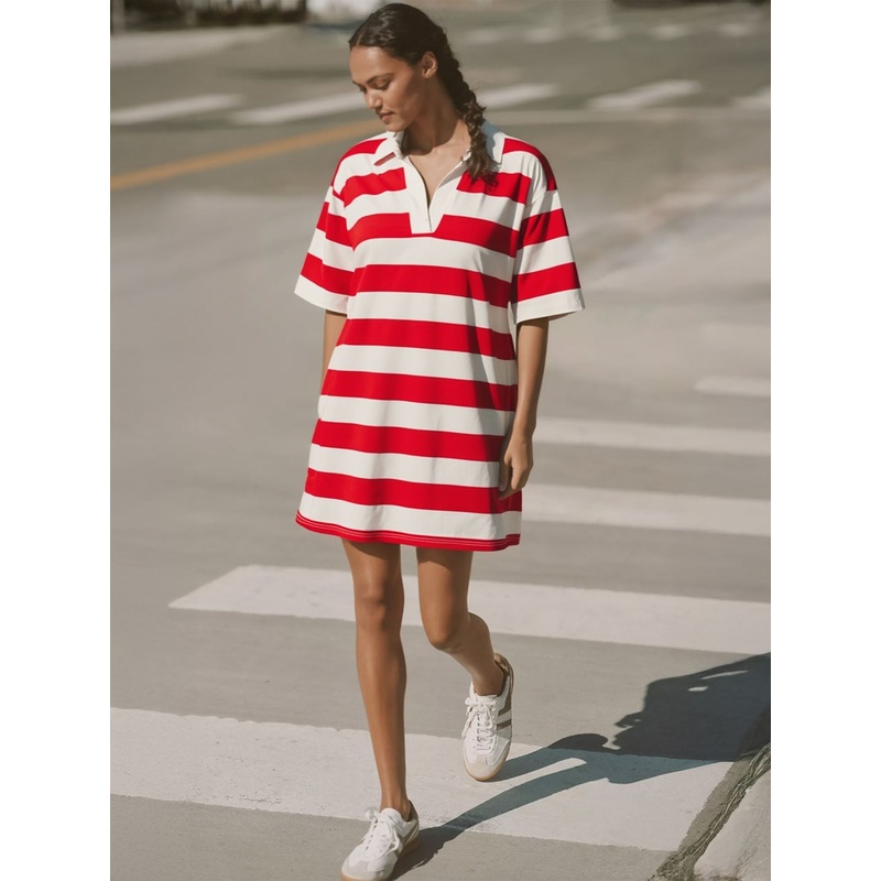 Striped Button Down Contrast Hem Dress BLACK – BLACK
