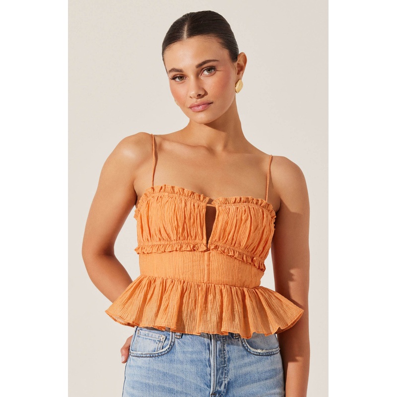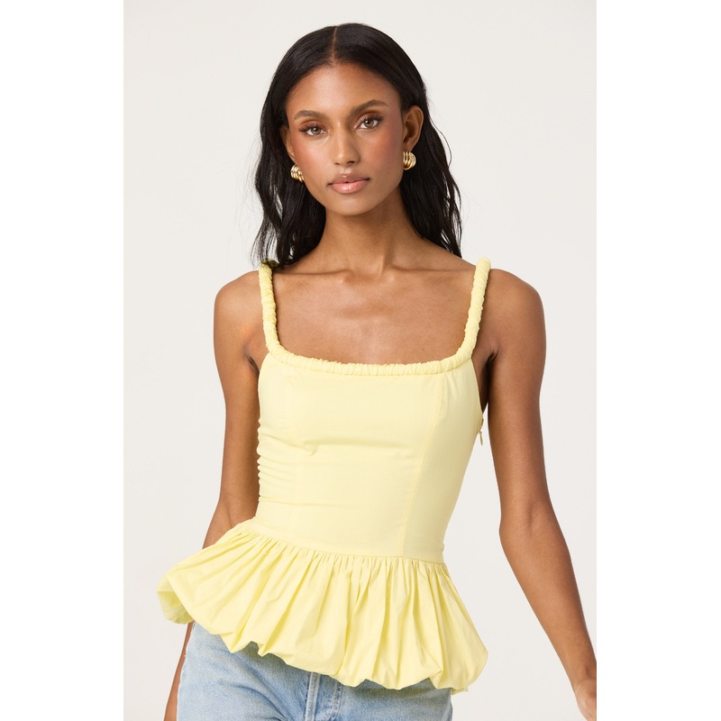 Sleeveless Bubble Hem Peplum Top Butter yellow