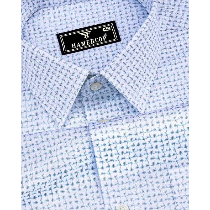 Trumpet White With Gray Printed Cotton Formal Shirt