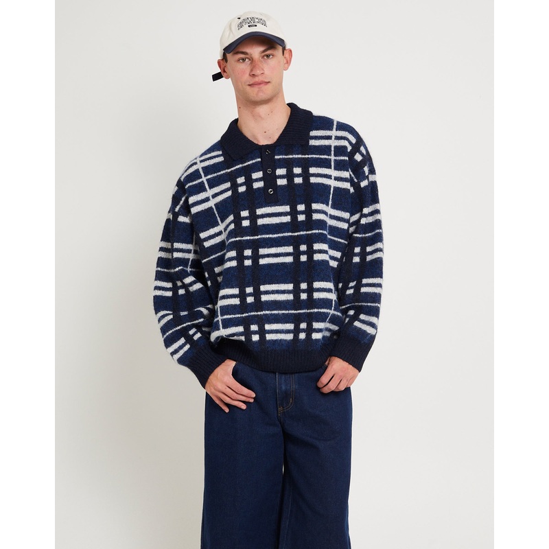 Union Knit Polo Jumper BLU