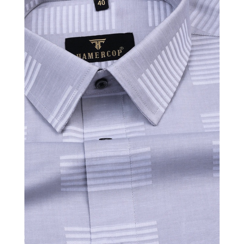 Yovel Gray With Box Pattern Premium Cotton Shirt