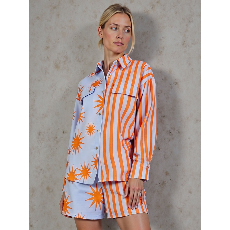 Star Stripe Mixed Print Button Down Shirt ORANGE – ORANGE