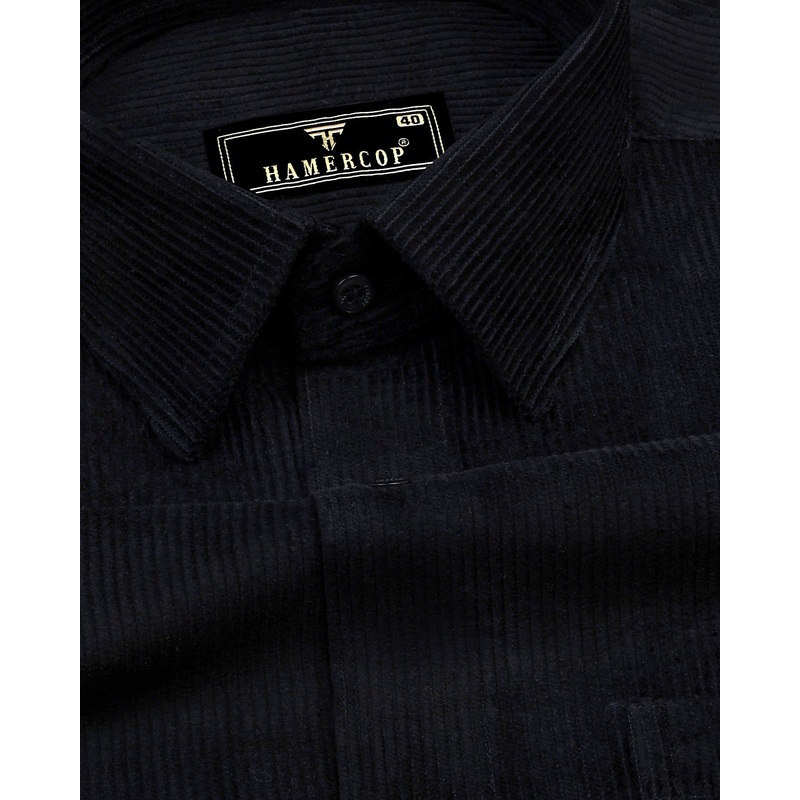 Spider Black Corduroy Premium Cotton Solid Shirt