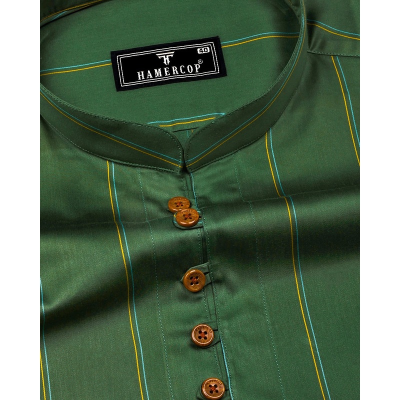 Spinach Green Stripe Satin Cotton Shirt Style Kurta