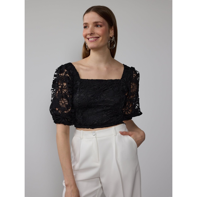 Square Neck Lace Puff Sleeve Top YELLOW – LEMON CHIFFON