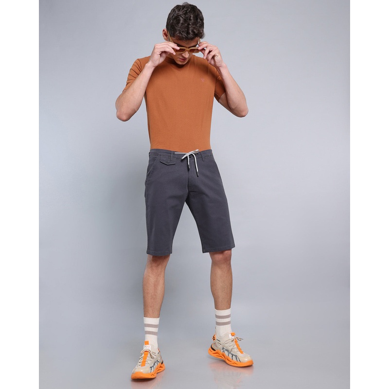 Stylish Charcoal Grey Stretch Cotton Shorts