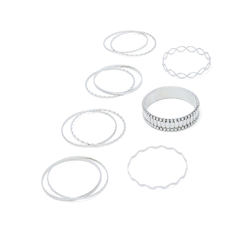 In silver-tone metal with shimmering rhinestones stones, the bracelets in this set feature sculptural designs that lend a classic finish to any look. collection. Whether you stack them or style them solo, these bracelets make a chic statement.