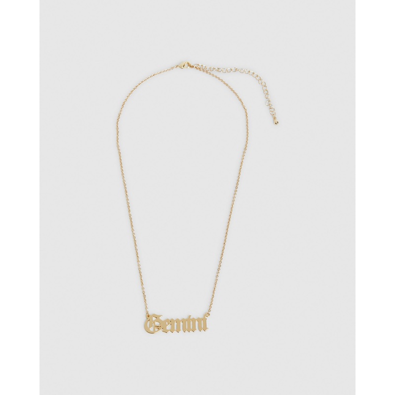 The Gemini Star Sign Necklace by Alice In The Eve is a lightweight necklace with an adjustable chain. Featuring cursive Gemini pendant with a lobster clip fastening and comes in a yellow gold colourway.