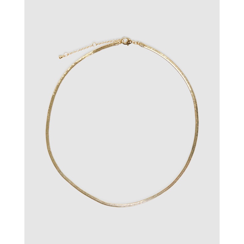 The 14k Snake Chain Necklace by Alice In The Eve comes in a sleek snake design and is a yellow gold colourway. The chain necklace features an adjustable lobster claw closure.