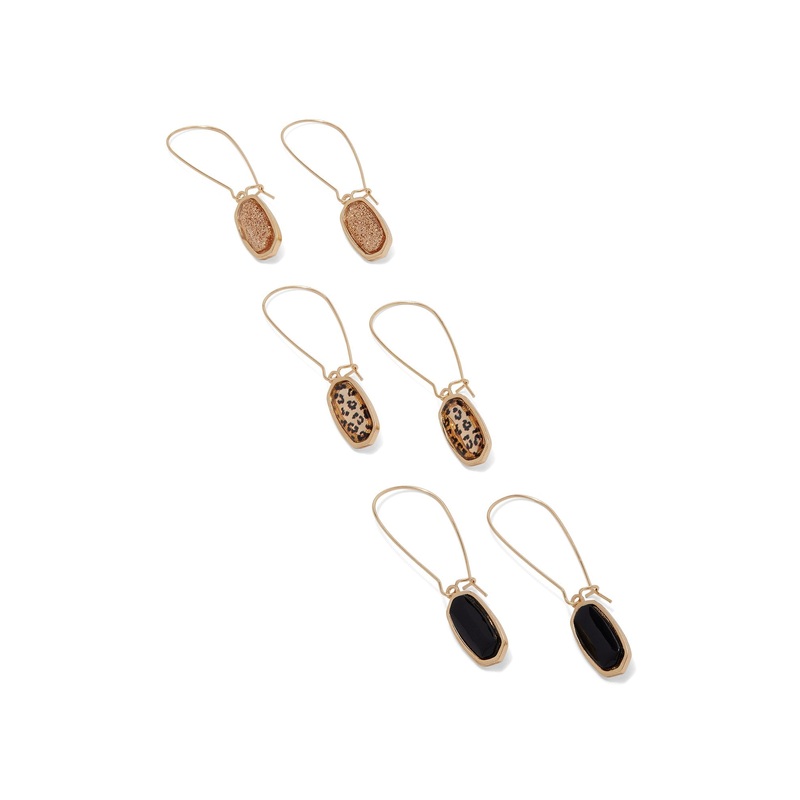 Chic styles fit for every look – this drop earrings in this set are rendered in gold-tone metal and accented with tortoise, black or leopard-print centers.