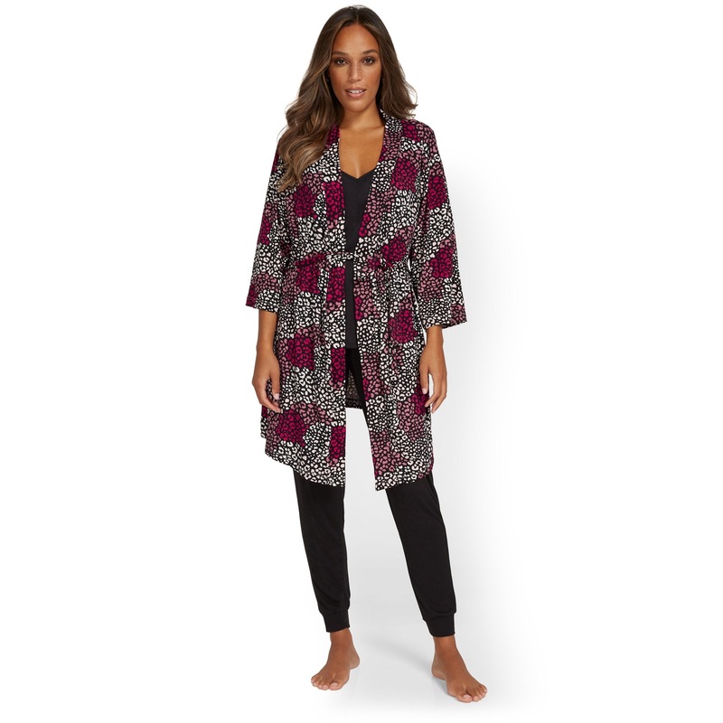 3-Piece Leopard-Print Robe & Pajama Set BLACK – BLACK