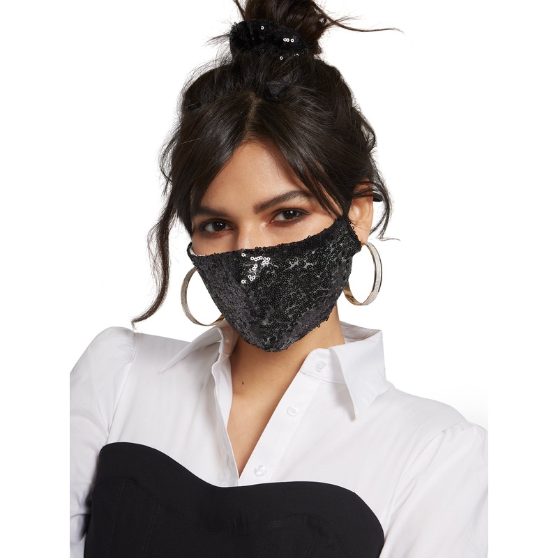 Make a totally glam statement with this sequined mask, scrunchie and hairband set. An easy way to turn up the style on casual days or to make a special occasion even more special.